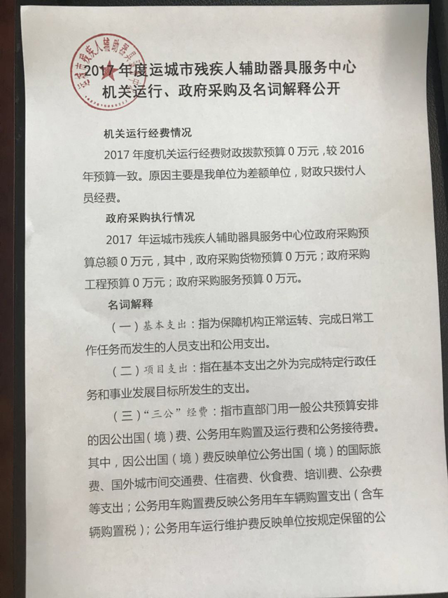 2017年度运城市残疾人辅助器具服务中心机关运行、政府采购及名词解释公开