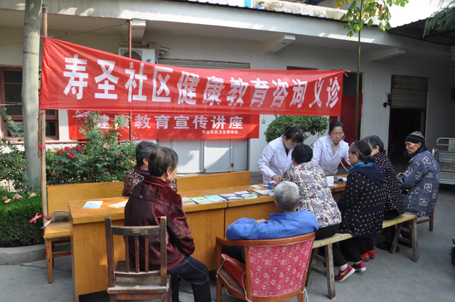寿圣社区卫生服务站工作人员为老人们测量血压、血糖,发放健康宣传资料、提供健康咨询。智力残疾亲友协会为老人们送去由激情广场艺术中心真情奉献的红歌联唱、妈妈的吻、婆婆也是妈等歌曲和经典眉户剧片段一颗红心、梁秋燕、十二把镰刀等老年朋友喜闻乐见的文艺节目。老人们回忆起过去的岁月,倍感亲切。