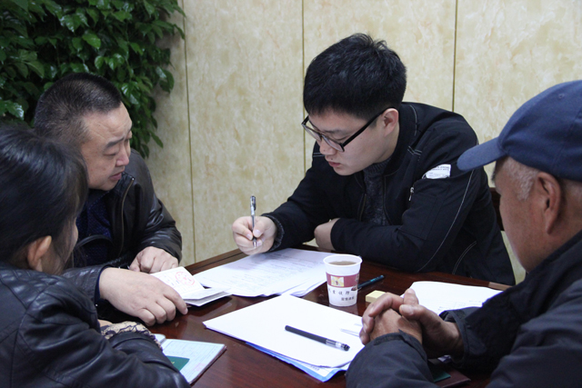 评估组成员陈天航现场向残疾人了解入户调查情况