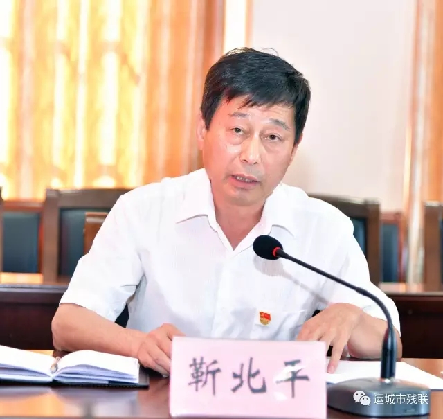 图为市残联副调研靳北平讲话